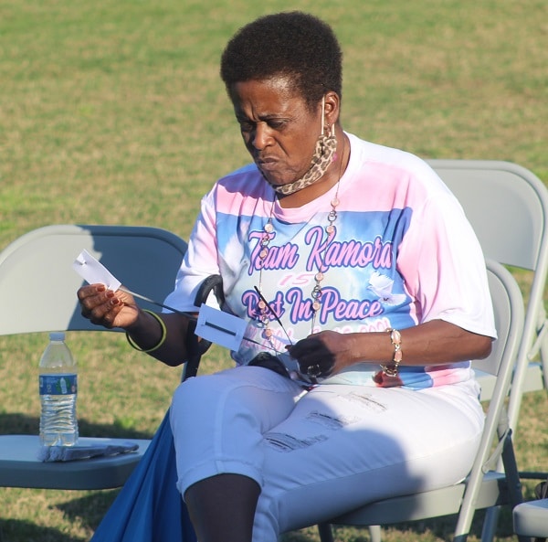Kamora’s coach, teammates, classmates and friends spoke during the vigil and many were unable to contain their tears. Rackliffe gave an uplifting message to her friends and family. Near the end of the vigil, everyone was given sparklers, which were lit in her memory. Each member of the girls’ soccer team also presented a rose to Kamora’s family.