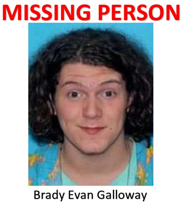On January 27, 2021, Brady Evan Galloway left his residence and has not returned. He was last seen wearing a McDonalds work uniform and a black jacket with neon lettering on a gray bicycle with neon green brakes. His direction of travel was unknown.