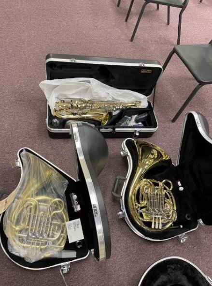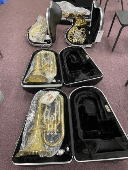 This year we purchased 2 new baritones, 2 new Double French Horns, a new Tenor Saxophone, and a new Bass Clarinet (not pictured).