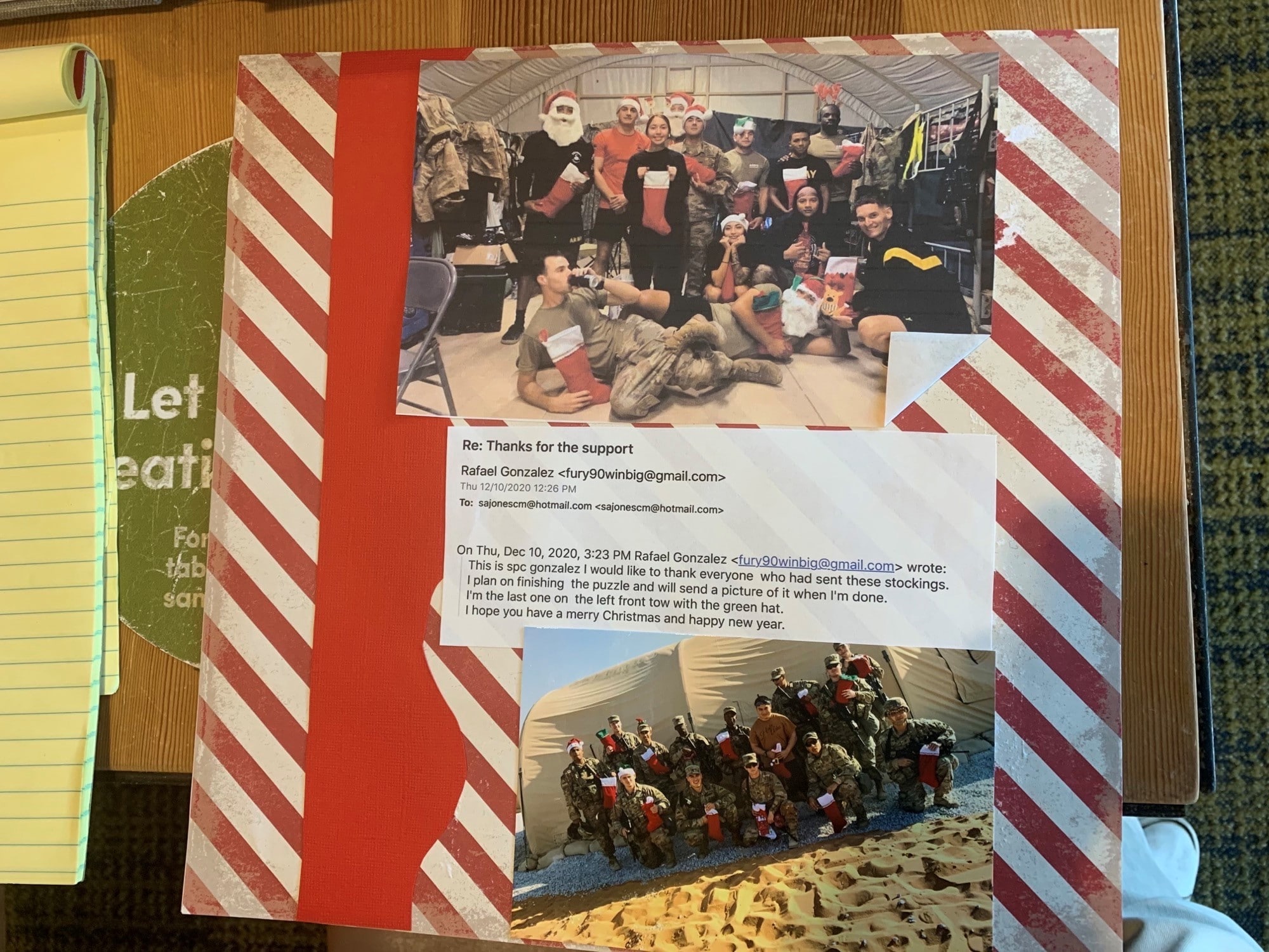 Photos of Troops with their Christmas stockings, thanks to a program through VFW Post 1349 of Prattville.