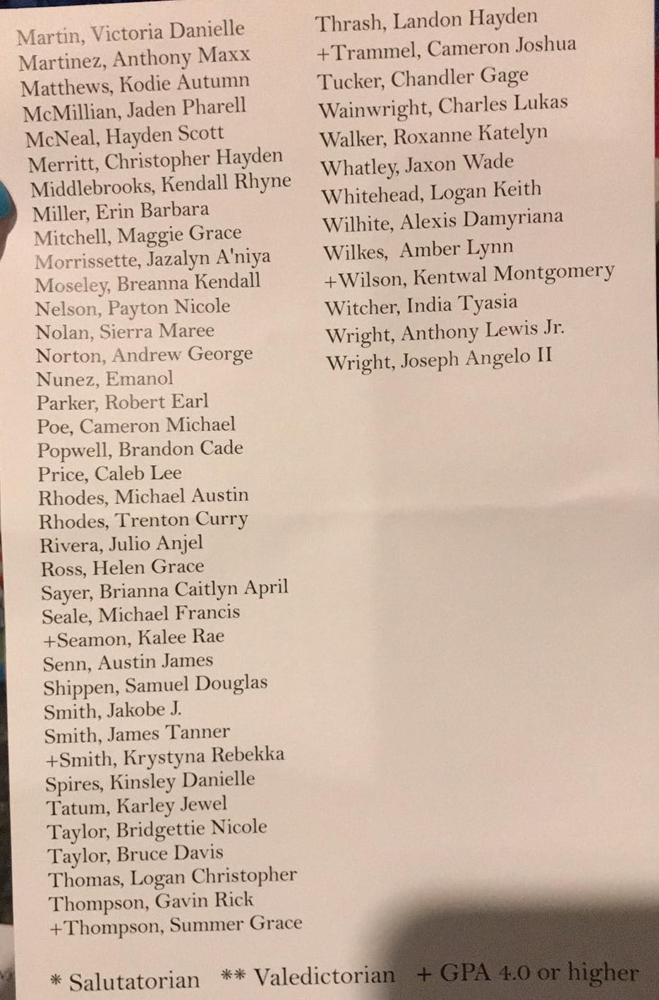 Principal Lyman Woodfin welcomed the crowd, followed by speakers Brantley Denny, Senior Class President; Bennett Landry, Salutatorian with a 4.48 GPA; and Valedictorian Kassidy Adams, with a 4.53 GPA.