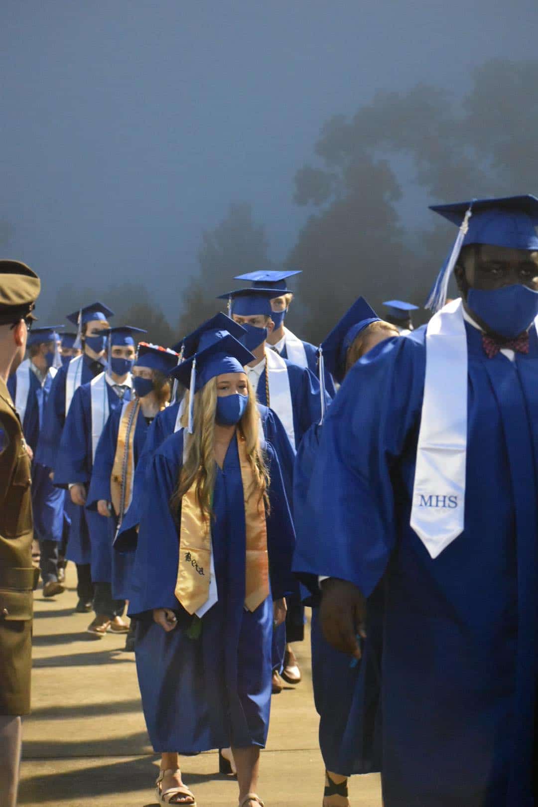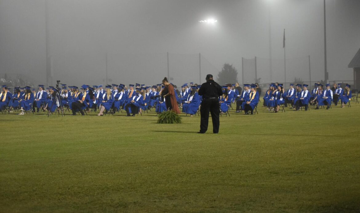 It was a foggy evening, but spirits were high. The night opened with Pomp and Circumstance with Edward Elgar, then the Invocation by Payton Nelson. The National Anthem was performed by the Marbury Choir.