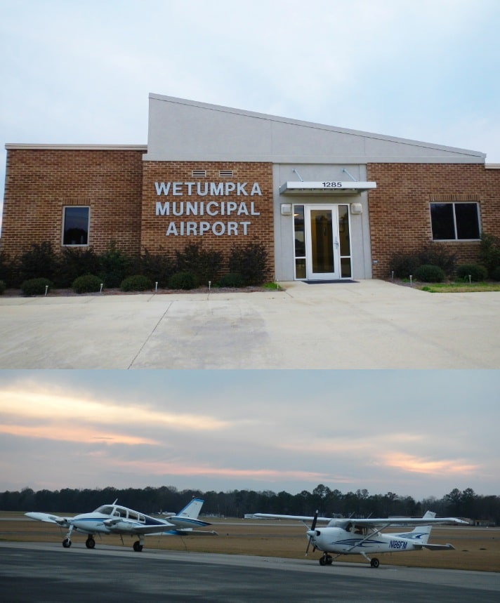 Wetumpka Municipal Airport covers an area of 312 acres (126 ha) at an elevation of 197 feet (60 m) above mean sea level. It has two runways: 9/27 is 3,011 by 80 feet (918 x 24 m) with an asphalt surface; 18/36 is 2,876 by 130 feet (877 x 40 m) with a turf surface. ( Source Wikipedia)
