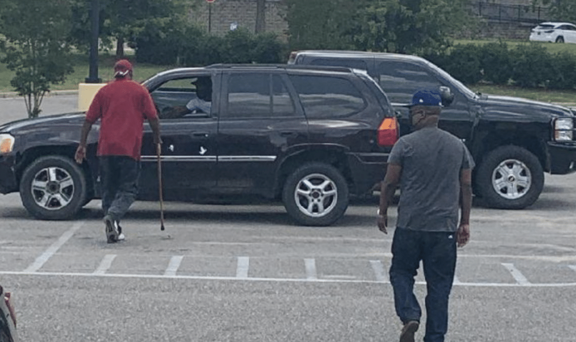 The males left in a dark colored GMC Envoy displaying tag 46AY734.