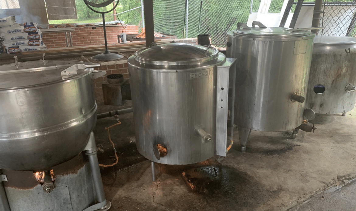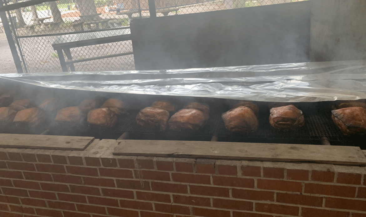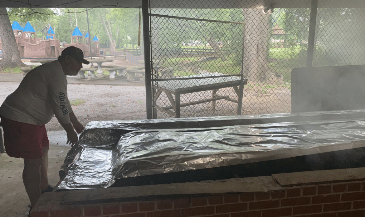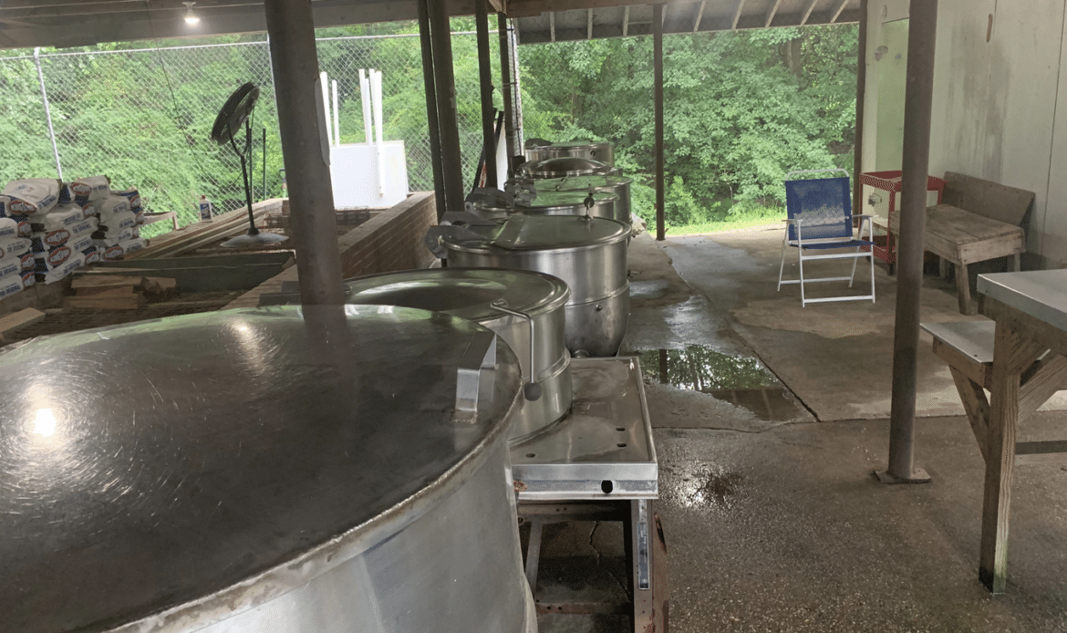 Huge grilling stations, kitchen areas, and camp stew pots were sizzling under the pavilion on Friday afternoon, bringing in the all-to-familiar BBQ smell that comes with the 4th of July. Over 800 pounds of Boston Butt and chicken will be slow-cooked throughout the afternoon, and 1200 quarts of freshly made camp stew will sit over hot flames.