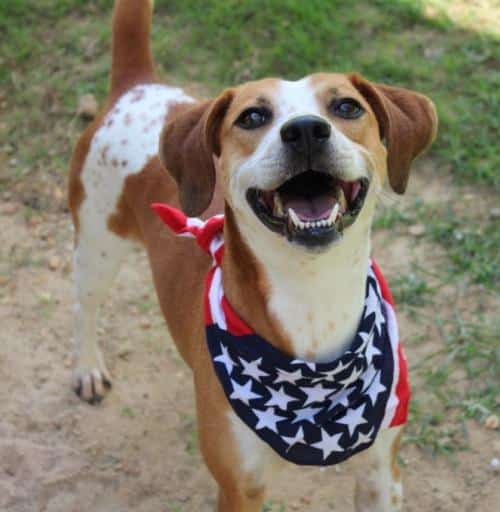 Athena is supposed to be a Heeler/Bloodhound mix though does look more Beagle’ish. She is three years old and only about 35 lbs so not a big gal. This adorable pooch has just the right amount of fun and energy. She loves to play fetch and actually returns it right to you. Her family moved without her and she needs a new place to play.