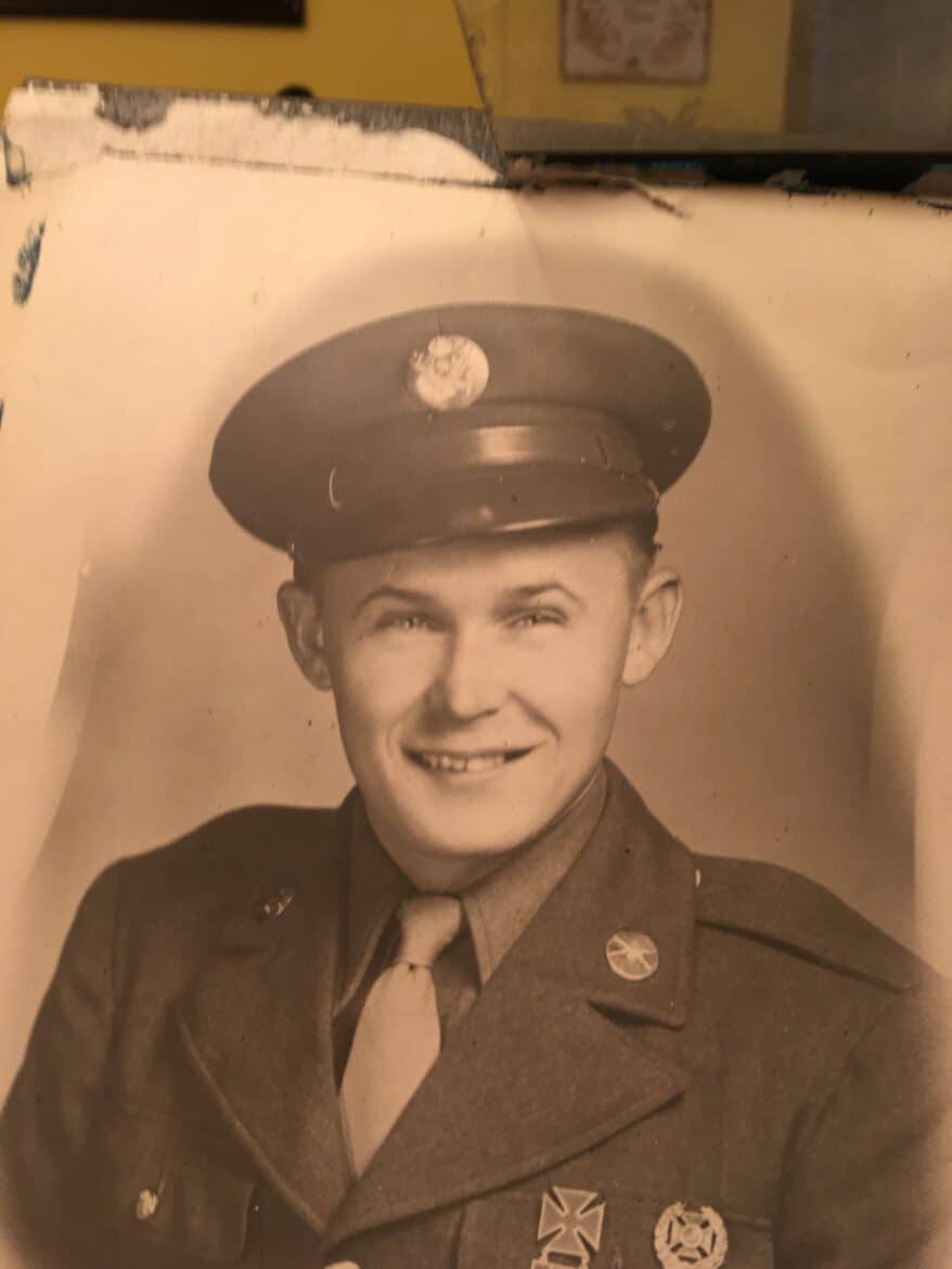He was drafted into the U.S. Army in June of 1944 and he completed 17 weeks of Infantry Basic Training at Camp Blanding, Florida. He sailed from New York City to Southampton, England. He took a train to a locations two miles within the German occupied area.