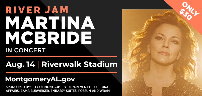 The City of Montgomery Department of Cultural Affairs presents the 2021 River Jam with Grammy award-winning artist Martina McBride live in Riverwalk Stadium with special guests The Wilson Brothers. Gates open at 5:00 pm, concert begins at 7:00pm.