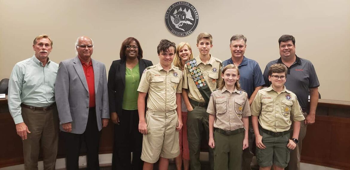 “Jonathan is a student at Prattville High School. He has been in the Scouts since he was six-years-old,” Council President Michael Gay said. “He is currently a Life Scout working on his Eagle Scout rank. He completed his Eagle Scout project in May here in Millbrook. The Eagle Scout project was at Robinson Springs United Methodist Church in which he constructed a handicap ramp into the annex building to be used as part of their Fishes and Loaves ministry where they provide food to the needy and the community. There are other ministries as well that use that building. He saw additional needs, such as landscaping, playground maintenance work and a Gaga pit.”