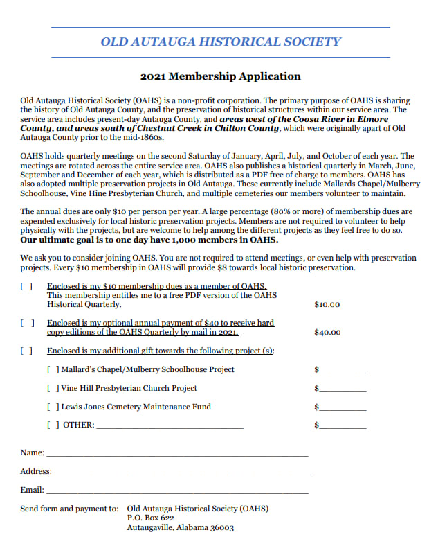 The Old Autauga Historical Society (OAHS) has a Facebook page for members only. The volume of photos and stories on the page alone is worth the $10 membership fee.