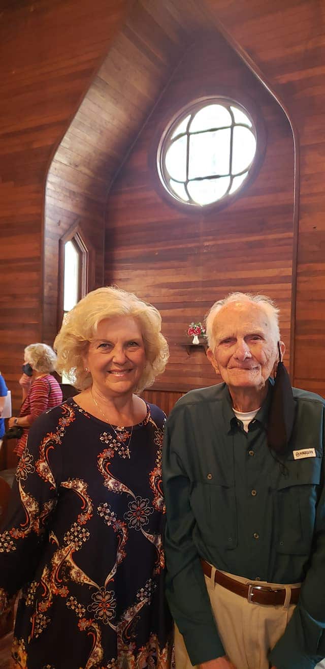 Cooper Deramus, 94, attended the church as a child and was seated on one of the original pews with his daughter, Shelia Deramus Wood, Sunday. His grandfather, Augustus O. Vinzant, is buried in the cemetery. Cooper remembers riding the train from Selma to visit his grandparents who lived near the church. He has vivid memories of attending services with Rev. Wardlaw as pastor.
