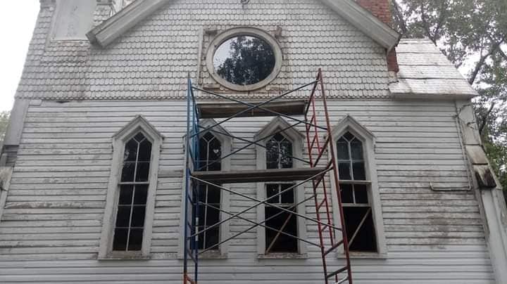 Some happy surprises have happened along the way, as well as some of the original components of the church being discovered, and/or returned. An original Preacher’s Chair was restored by Beth DeBusk. An old piano was donated for the church by Joan Smith.