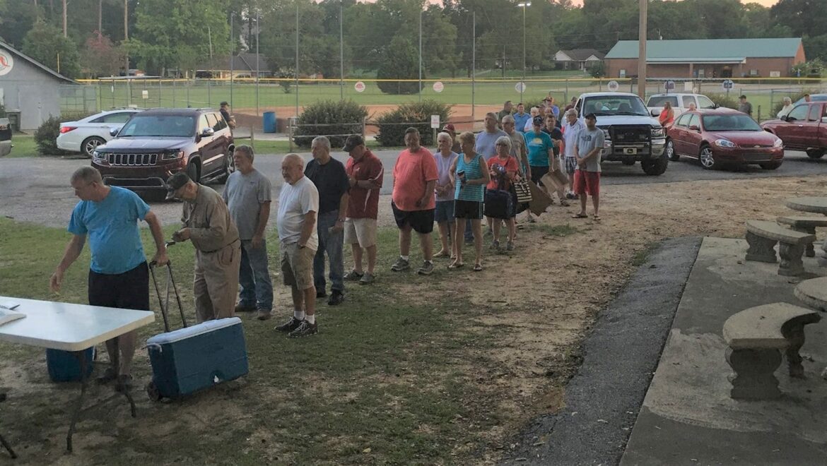 Long lines are normal….but worth it! Many people bring coolers or boxes to stock up on barbecue and camp stew until the next cook!