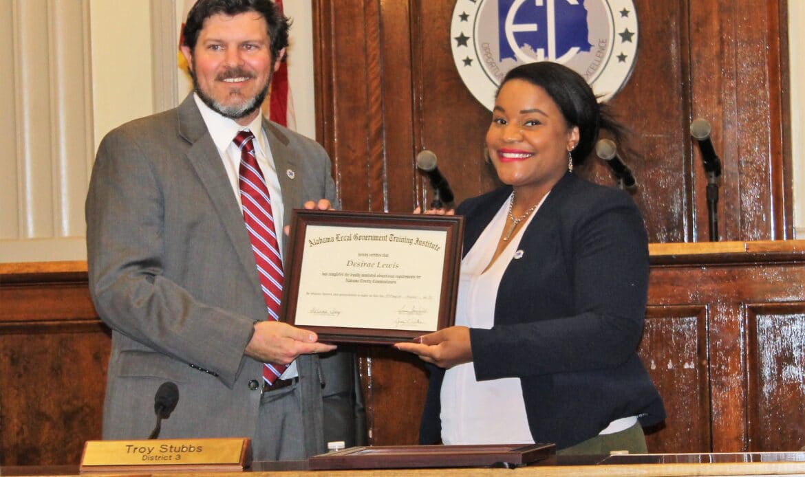 Also Monday, two Elmore County Commissioners, Henry Hines and Desirae Lewis, were recognized for completing a course of educational requirements through the Alabama Local Government Training Institute.