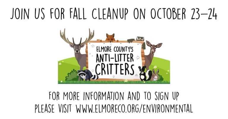 Individuals or groups wanting to participate need to visit the county’s website at www.elmoreco.org/environmental and complete the “October Cleanup Registration Form.” Once completed, this form should be emailed to [email protected]