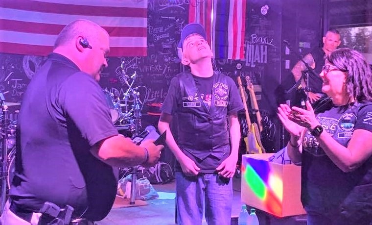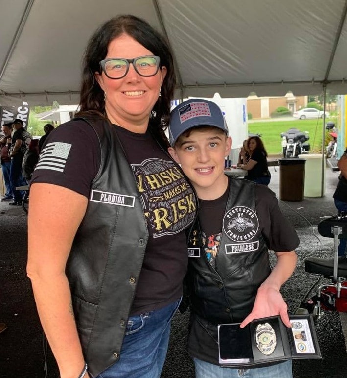 Austin, 14, is from Florida, but for some time now has also been an honorary member of Punishers LEMC. He proudly wears a vest for the Punishers, with a patch that says “Protected by the Punishers.” As in all of them…across the world. The Punishers LEMC includes members that are current or former law enforcement officers, first responders, and military.