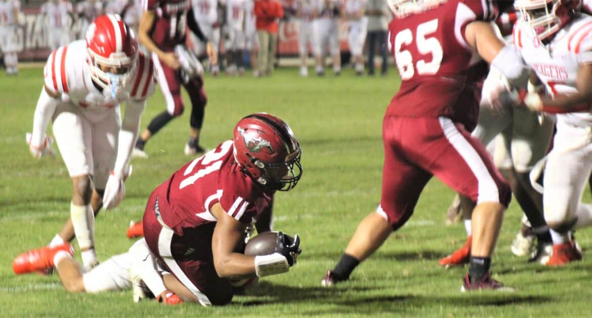 The Stanhope Elmore defense, led by defensive lineman Caleb Foster who made 12 tackles, continued to put the clamps down on the Eufaua offense. However, the Mustangs then made the first of several blunders that led to points for the Tigers. Eufaula punted the ball and it rolled inside the Mustangs’ 20-yard line. With the coaches yelling for the team to get away from the ball, one Mustang player attempted to make a big play and pick the ball up. Unfortunately, he fumbled the ball and the Tigers recovered 16-yards away from the end zone.