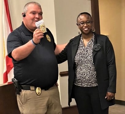 After the Mayor congratulated the officers, each of the city council members personally thanked the officers that were promoted as well. City Council President Michael Gay told the crowd a story of when he moved to Millbrook and one of the first people he met was a police officer.