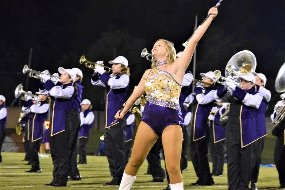 Featured soloists this year are Danielle Bird, Lacey Carter, and Kinsley Glasscock. Majorettes are instructed by Vicki Baker. Auxiliaries coordinator is Jennifer Crain.ย The percussion instructor is Jordan Wallace, and the music was arranged by Mike Hammonds.