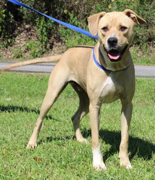 He is super active and playful but nothing a daily romp in a nice fenced yard wouldn’t help with. Ray is also very sweet and gets along great with other dogs. He would be just fine in a home with children; but due to his size and energy level, probably should not be in a home with small children. Ray is working on his leash training and with an experienced and patient owner he will quickly learn acceptable behavior. He is smart and eager to please once he understands what it is you want him to do. Please come out and meet our great, BIG, bouncing boy–Ray!