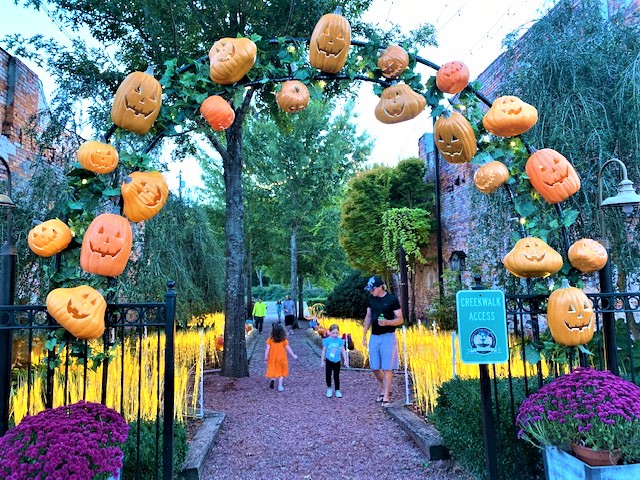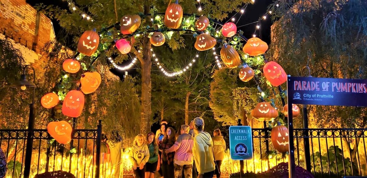 City of Prattville featured carved and decorated pumpkins from the community. The downtown Prattville shoppes had festive Halloween store front displays, many spooky decorations throughout, and a new GLOW trail that lights up as well.
