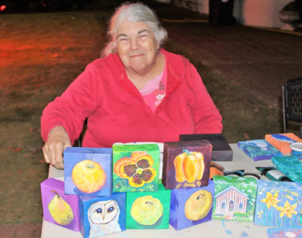 Kasey Hope and Kayleigh Harmon were busy painting ceramic pumpkins outside of P’zazz Art Studio. They displayed some of the paintings and projects that people can create in their classes. Hope said they teach online classes, adult classes and children’s classes in their downtown studio.