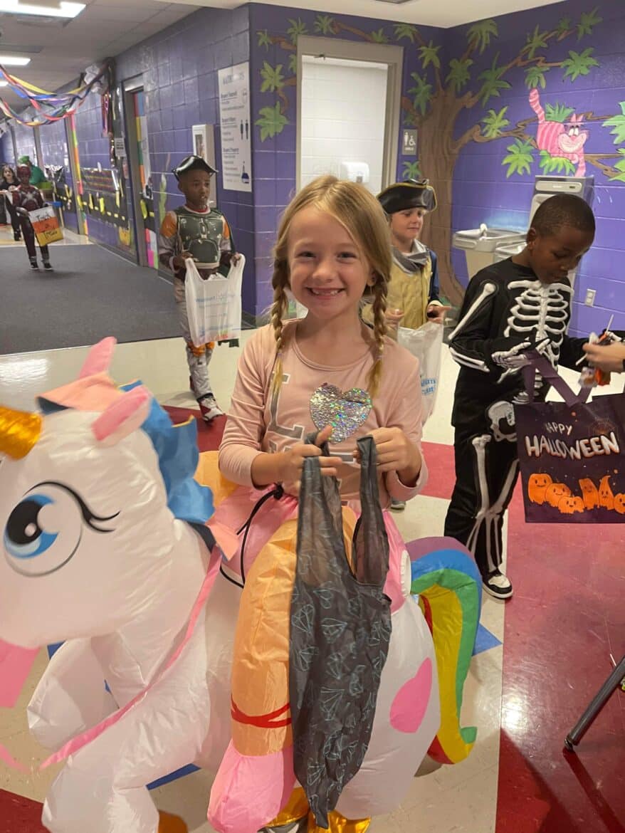 The candy was donated from the parents of Coosada. Each student was sent home with a big bag of candy for them to enjoy as well. The students had the best time going around the school and getting candy. Valena Agee and Daphne McClendon are the MVPs who organized this entire week for the children. Coosada Elementary also did a door decoration contest for the teachers.