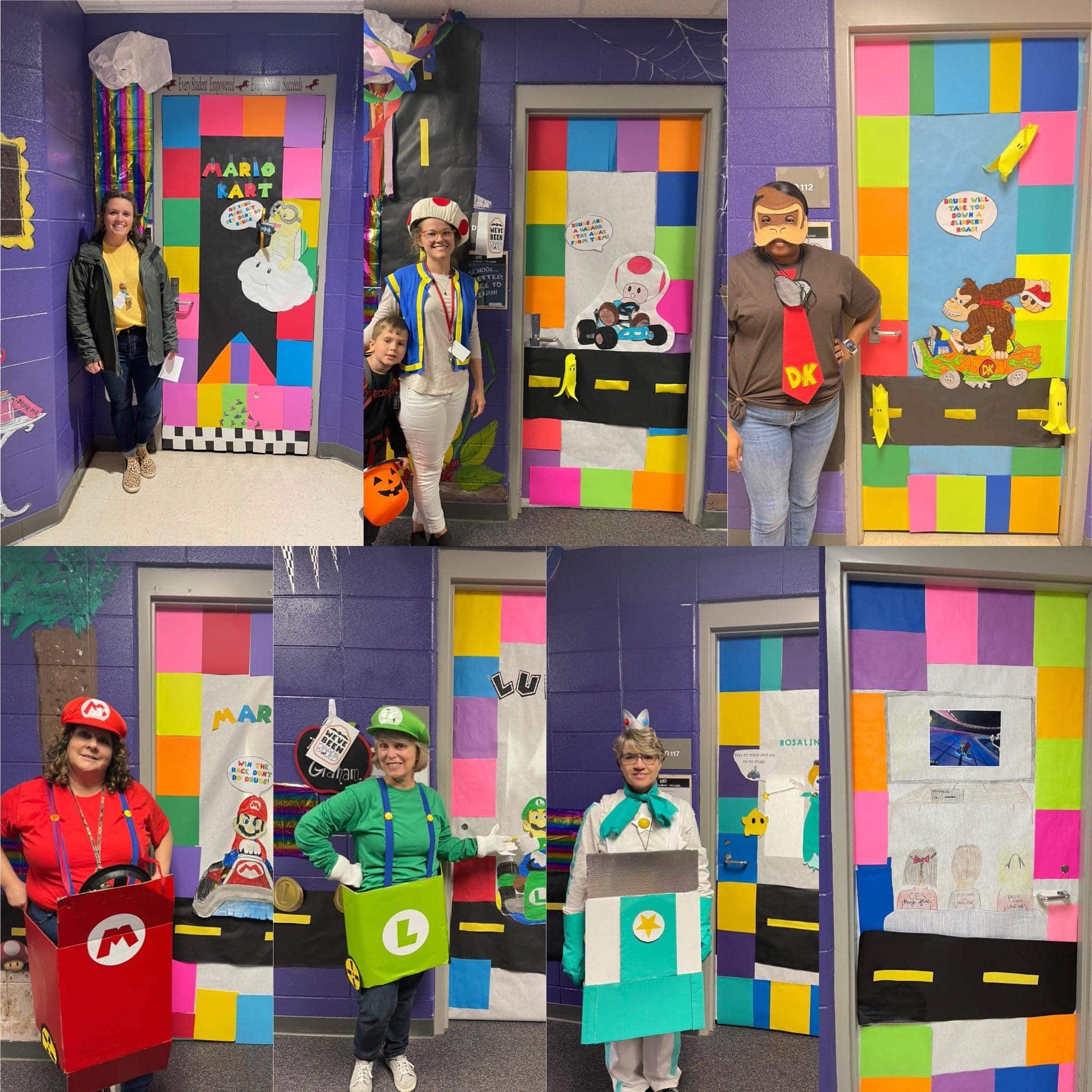 Coosada Elementary School students had dress up days throughout the week for Red Ribbon Week. On Friday October 29th students enjoyed a BIG celebration by doing a Super Mario Candy Grab organized by the counselors for Coosada Elementary – Valena Agee and Daphne McClendon. All of the students from PreK, Kindergarten, 1st Grade, and 2nd Grade were able to walk throughout the school to show off their costumes and get candy from their non-homeroom teachers.
