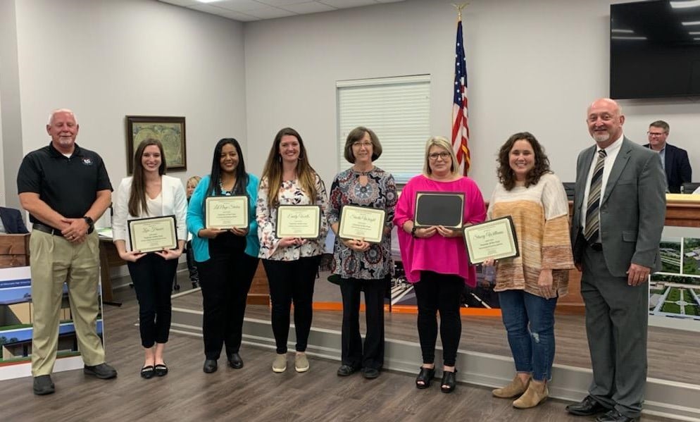 Teacher of the Year awards for the K-6th Elementary are: Zoie Frazier (ARIS), LaNaye Stokes (CES), Emily Wells (EES), Sheila Wright (HES), Susan Debrow (RES), Stacey Williams (WES), Ericka Shockley (EMS), Beverlee Forney (HMS), Leah McAlister (MMS), and Shelby Nobles (WMS).