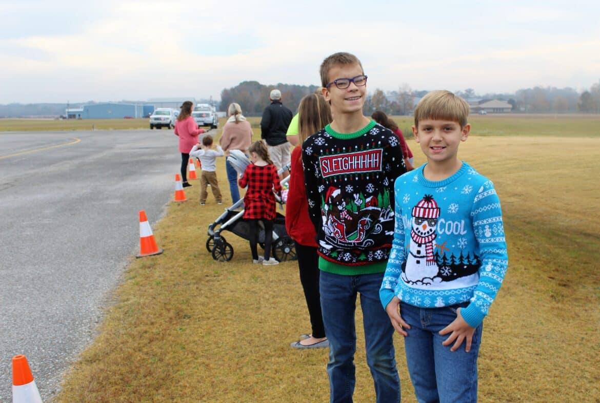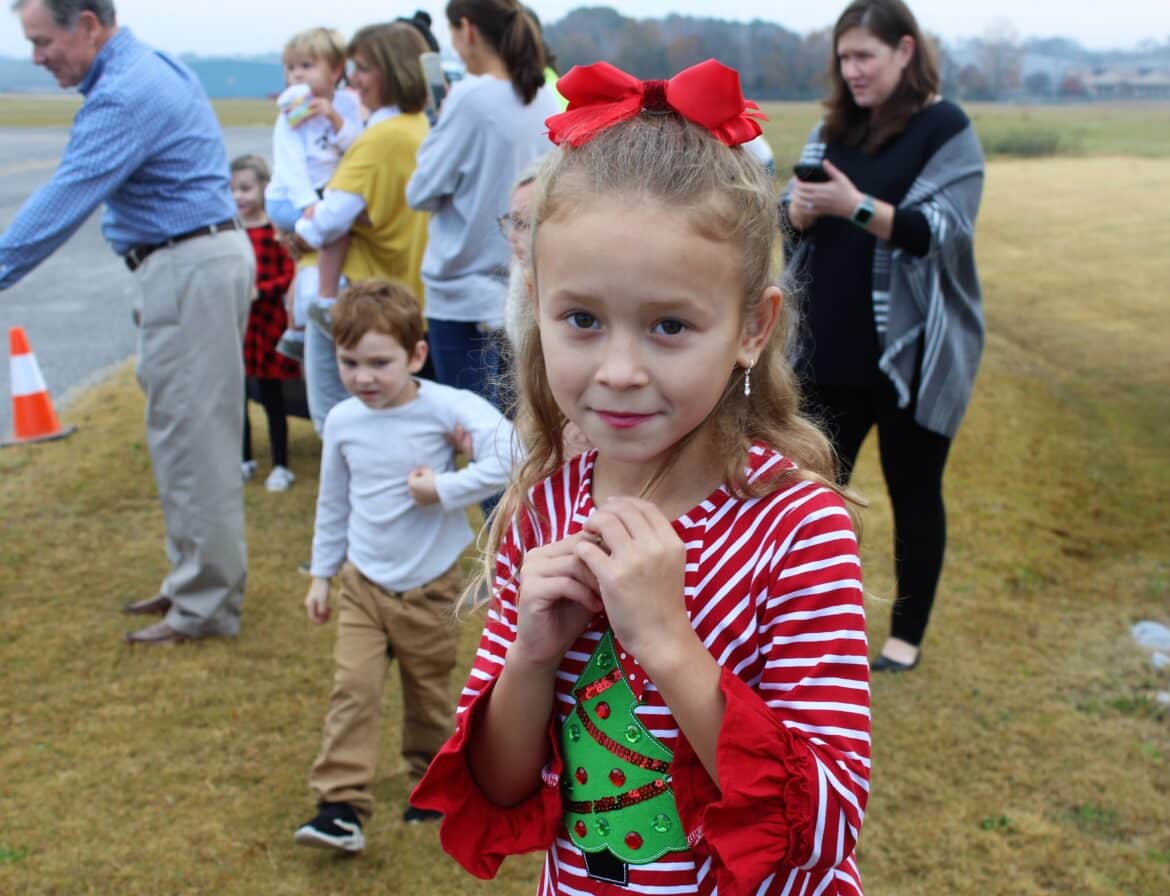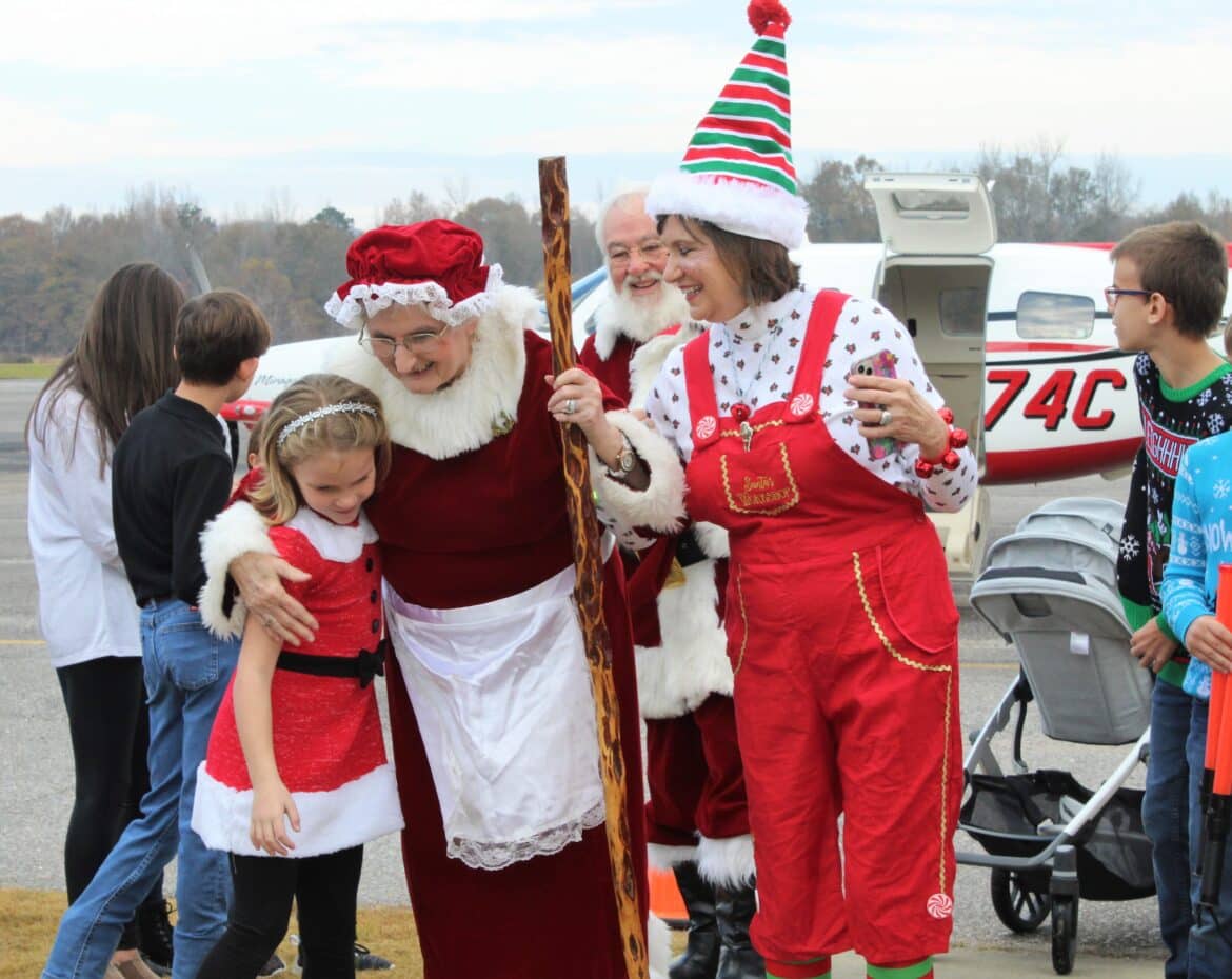 Santa and Mrs. Clause flew into the Prattville Airport Saturday morning where a large crowd of children greeted them on the runway before getting extended visits inside the terminal.