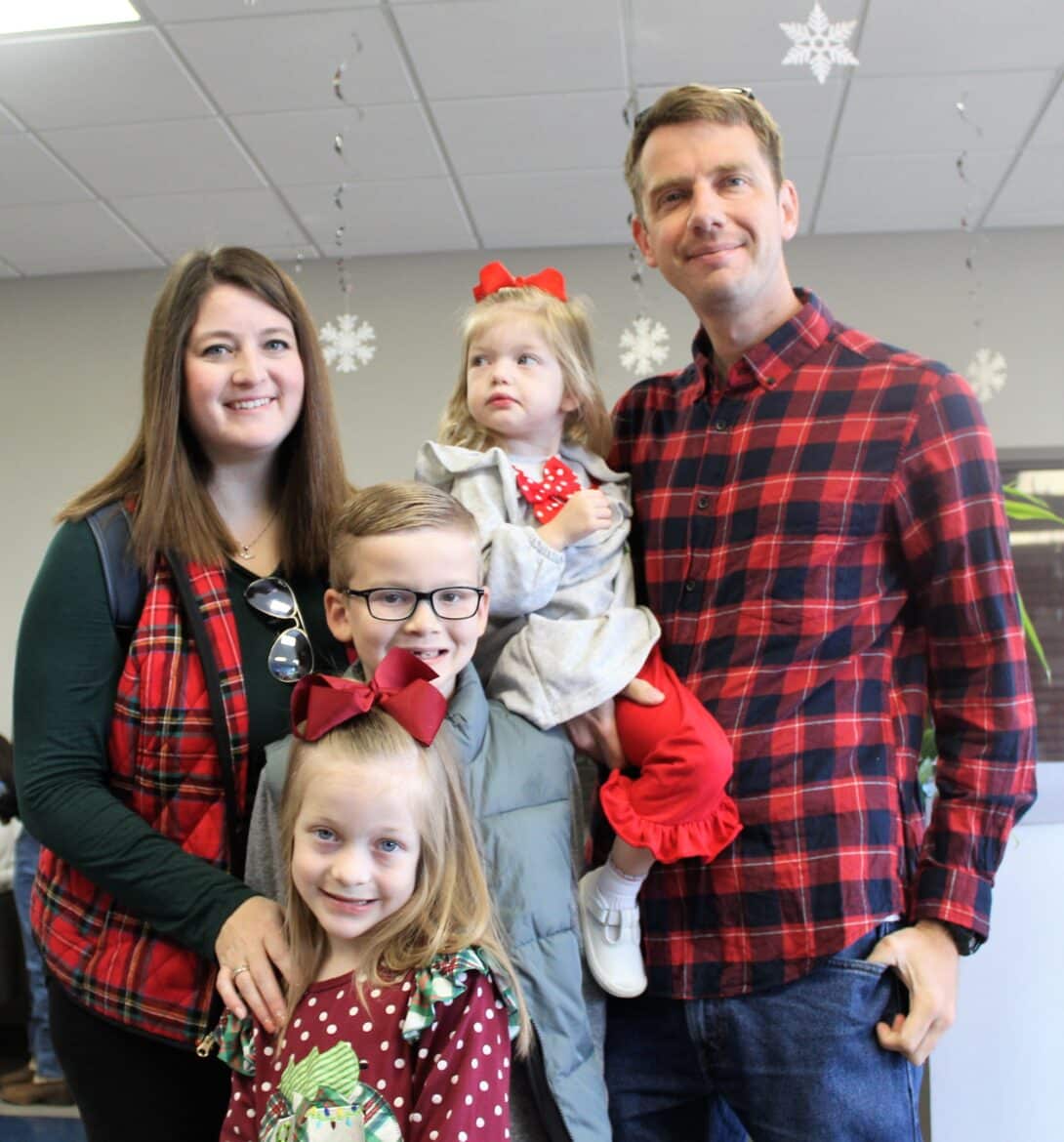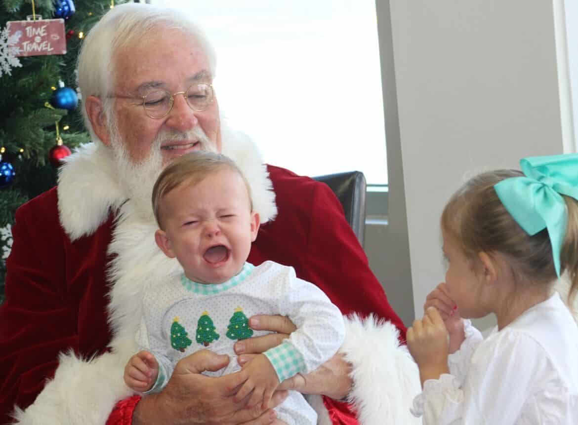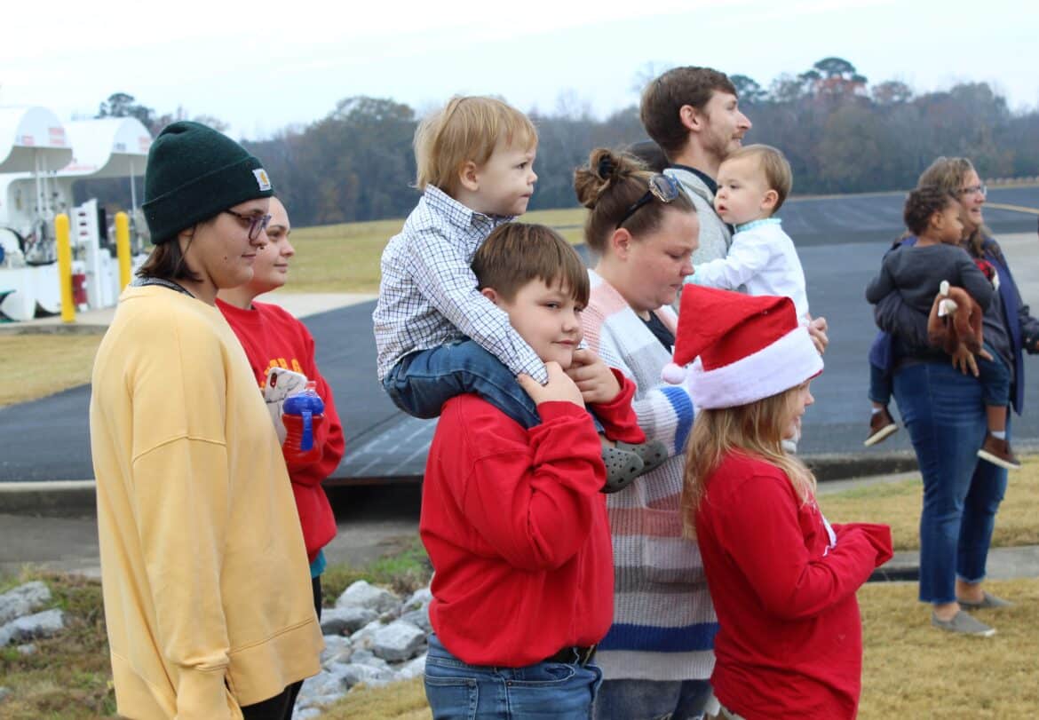 Sarah Kelley brought her two children Avery Claire, 4, and Luke Tyler, 19 months. Although Tyler wanted nothing to do with the Santa at first, he ended up sitting on his lap and giving Mrs. Clause a high-five. Kelley said her father Steve Sherman has a plane at the facility and this was the first time she has brought the children to the event and they really enjoy it.