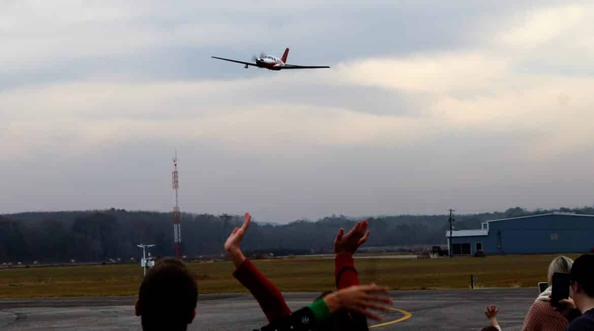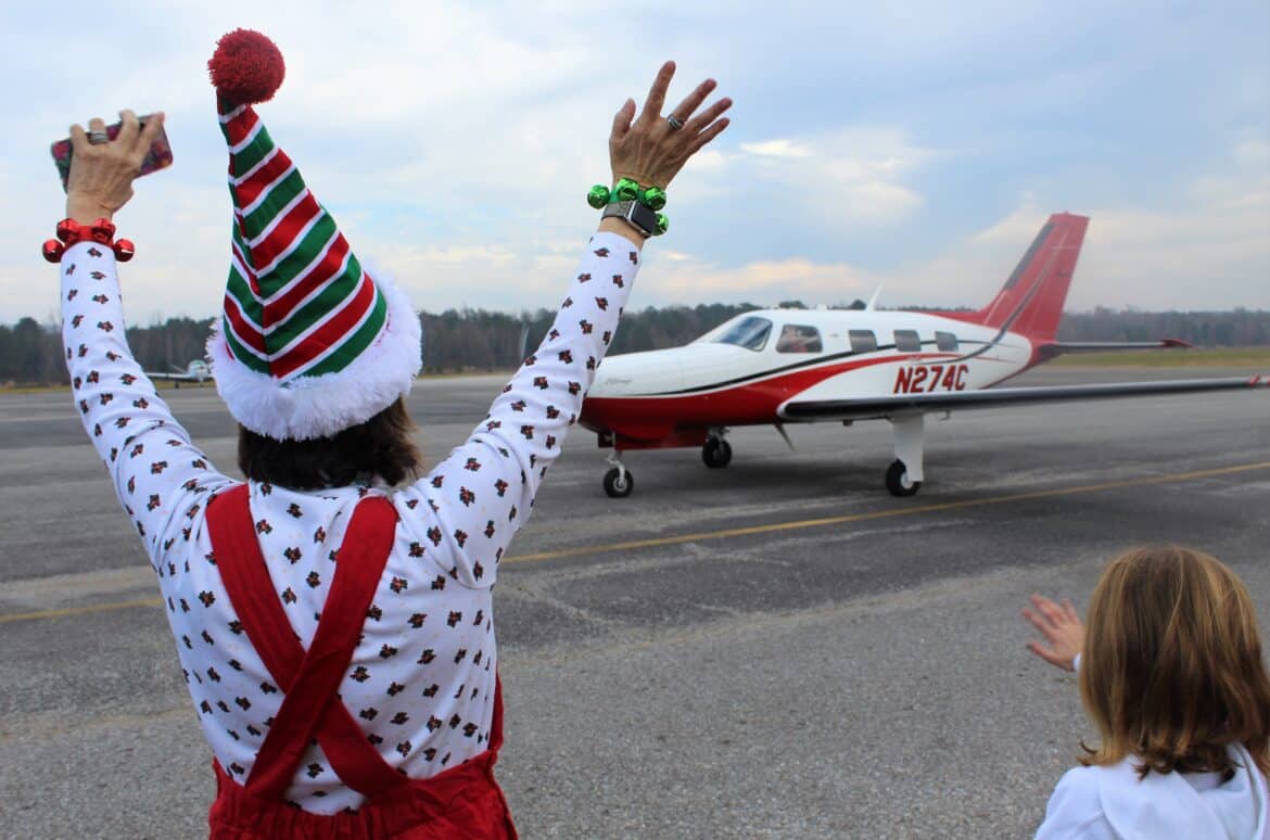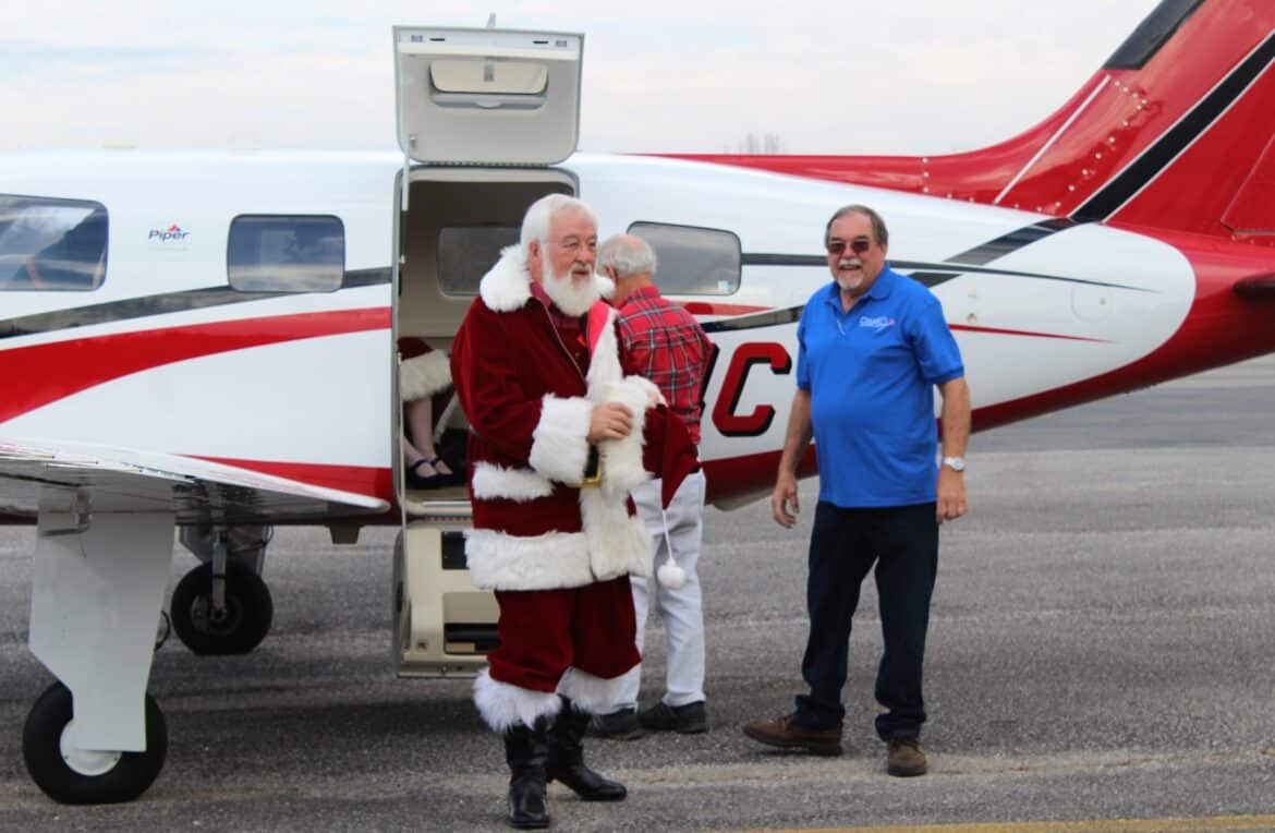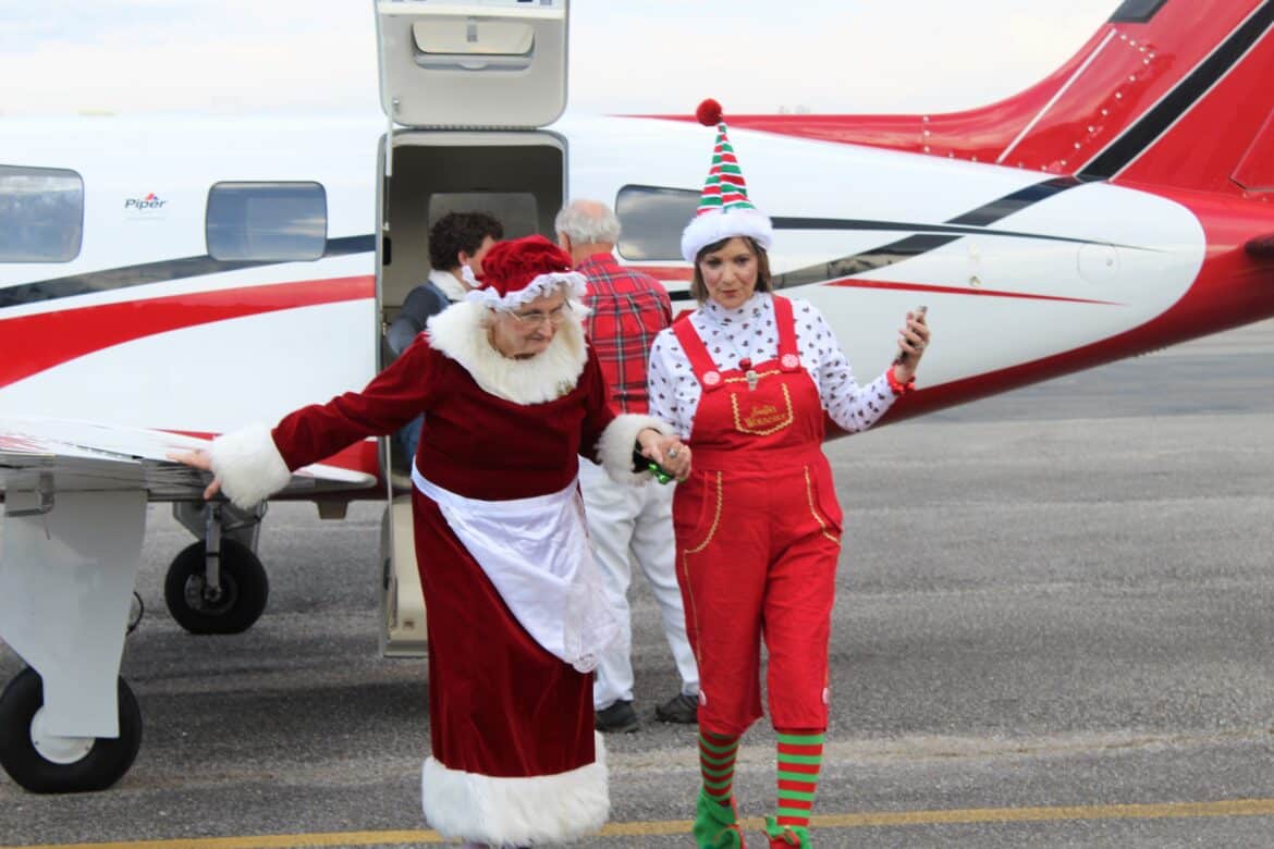 The event, called the Santa Fly-In, is the brainchild of Elisabeth Gardner. She and her husband, Paul Gardner, are the owners of Cloud Nine Aviation where the event was held. Mr. Gardner is a pilot and they own the airplane that brought the Clauses to the airport.