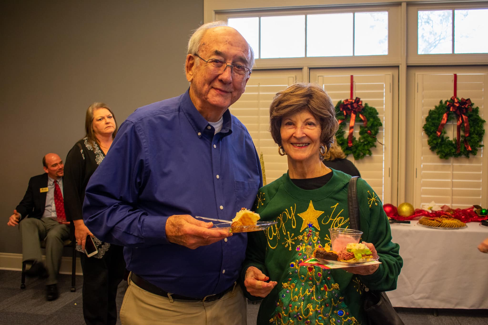 There was a large buffet with a variety of foods to choose from, as well as punch and desserts. People mingled with one another, talked about their plans for the holidays and exchanged business cards.