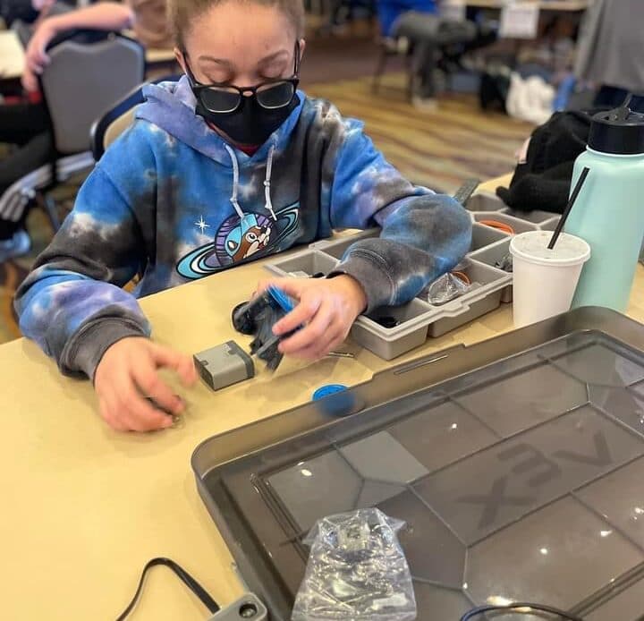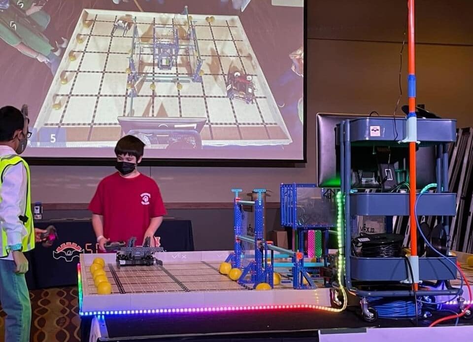 “I went in knowing very little about robotics. I had been around the kids and helped out when I could, I briefly taught a robotics class last semester and really fell in love with the problem solving aspect. More importantly I loved seeing the kids be challenged by a problem they have created or something they wanted to add, and then working together to solve it! I enjoyed seeing how each student thought of different solutions and kept trying them out until they came together to figure out something that worked. So when I was asked to take on an official coaching responsibility I jumped at the opportunity! I volunteered to chaperone before starting to coach, and little did I know I would end up being the one to get them through the competition alone (although not without our head coach Carrie Licina helping solve problems from a distance and FaceTiming for several matches and practices),” said Powell.