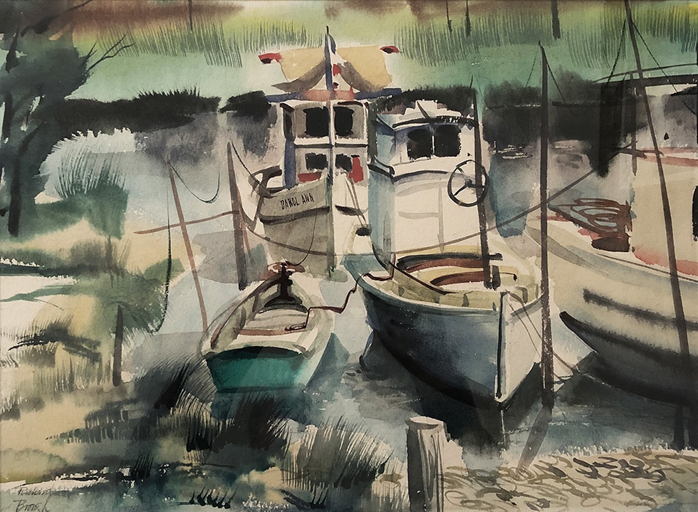 Top Photo: Richard B. Brough, The Carol Ann, n.d., watercolor on paper, 14.5 x 20″  |  RBB-2022.AW.0001