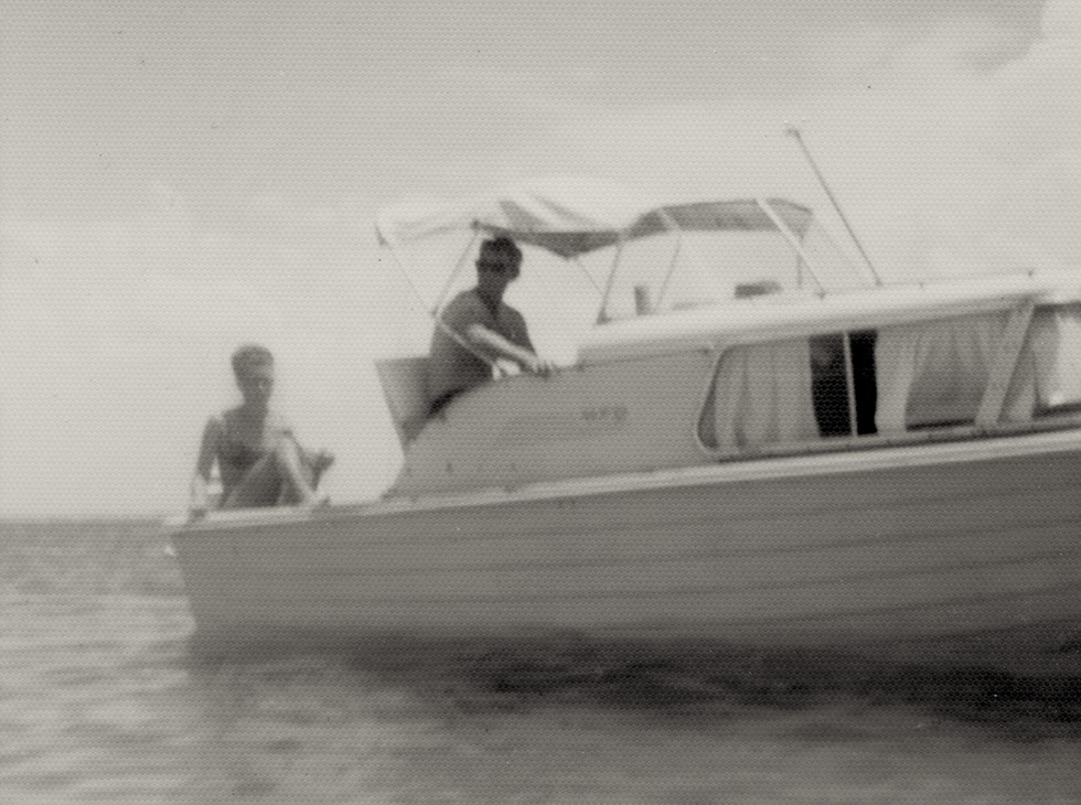 Pictured in the family boat is Ellen and John Harris at the Gulf of Mexico  |  circa 1970.