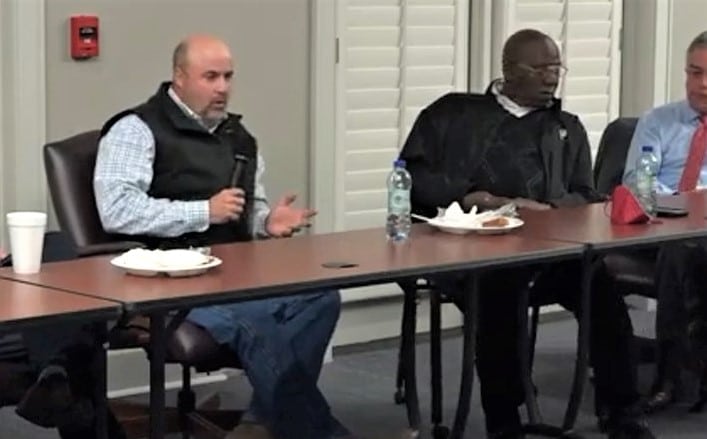 Top Photo: State Representative Will Dismukes, at right, and Kelvin Lawrence were in attendance at the meeting Monday. All photos from this article are still shots from the video from Monday night’s meeting. Thank you Jerry Cimis for sharing the video.