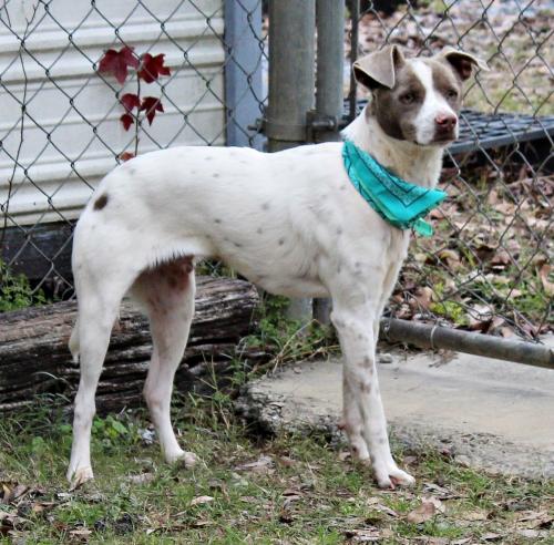 Rocket is a 2-3 year-old male, about 30 lbs, rather light boned so perhaps has something like Whippet in him but we are guessing. Rocket is VERY SHY when he first meets you and quite scared of men sadly. Once he is more comfortable with you he loves tummy rubs and being petted. Rocket will need a quiet type home and a gentle touch to build his confidence. He is supposedly good with older children. He is fine with other dogs that aren’t too over the top energy wise. We think he is the kind of dog that will just blossom in the right home for him.