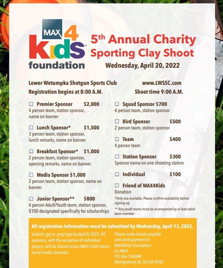 The MAX 4 Kids Foundation will host the 5th Annual Charity Sporting Clay Shoot Wednesday, April 20, 2022.