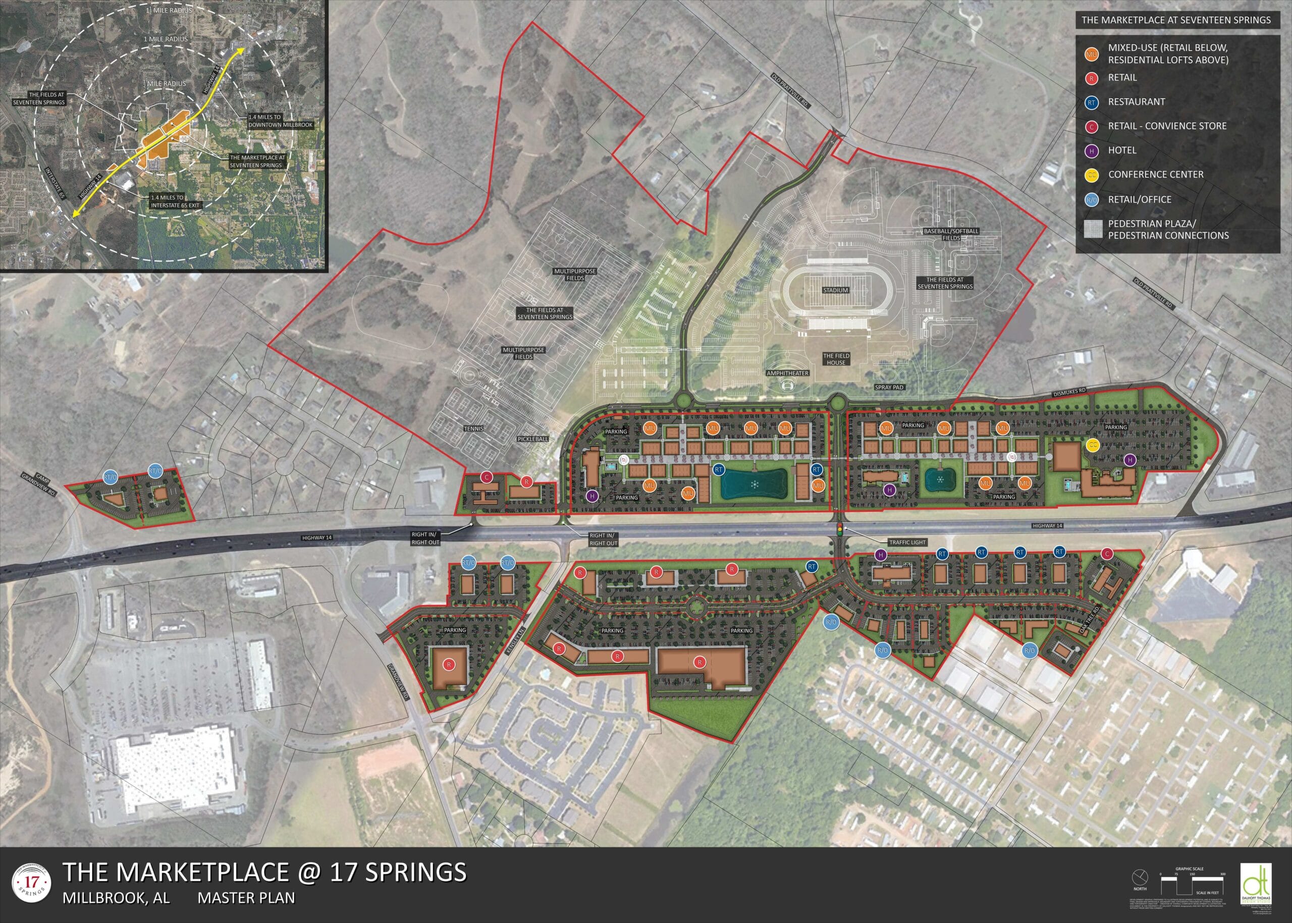 See proposed layout of the Marketplace of 17 Springs below.