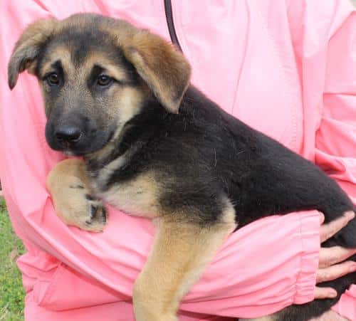 Arlette is black with brown markings–classic for a German Shepherd. She will be a medium sized adult dog who will weigh 30-60 pounds. Arlette is simply adorable! She is calm, laid back, and loves to snuggle.