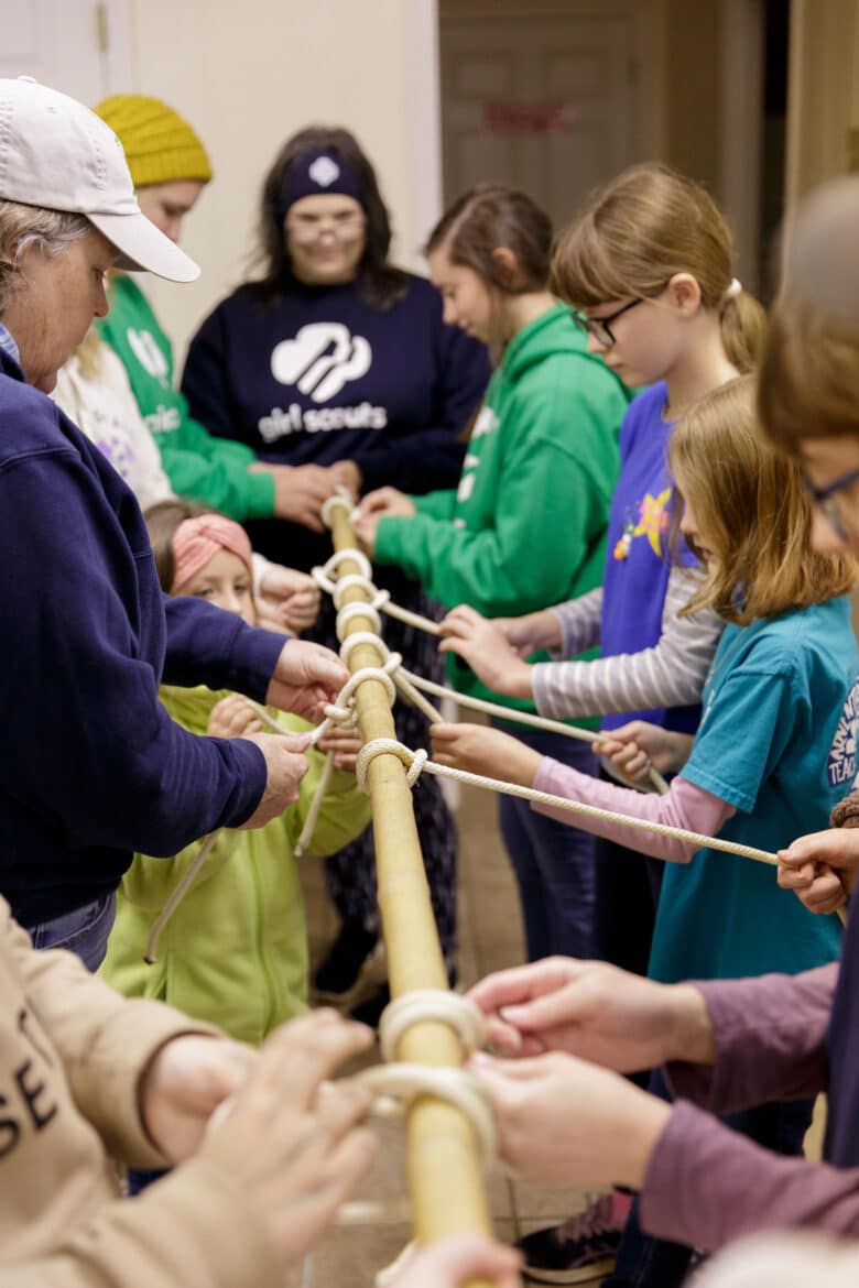 TOP PHOTO: Girl Scouts hone their knot tying skills at Kamp Kiwanis of Eclectic.