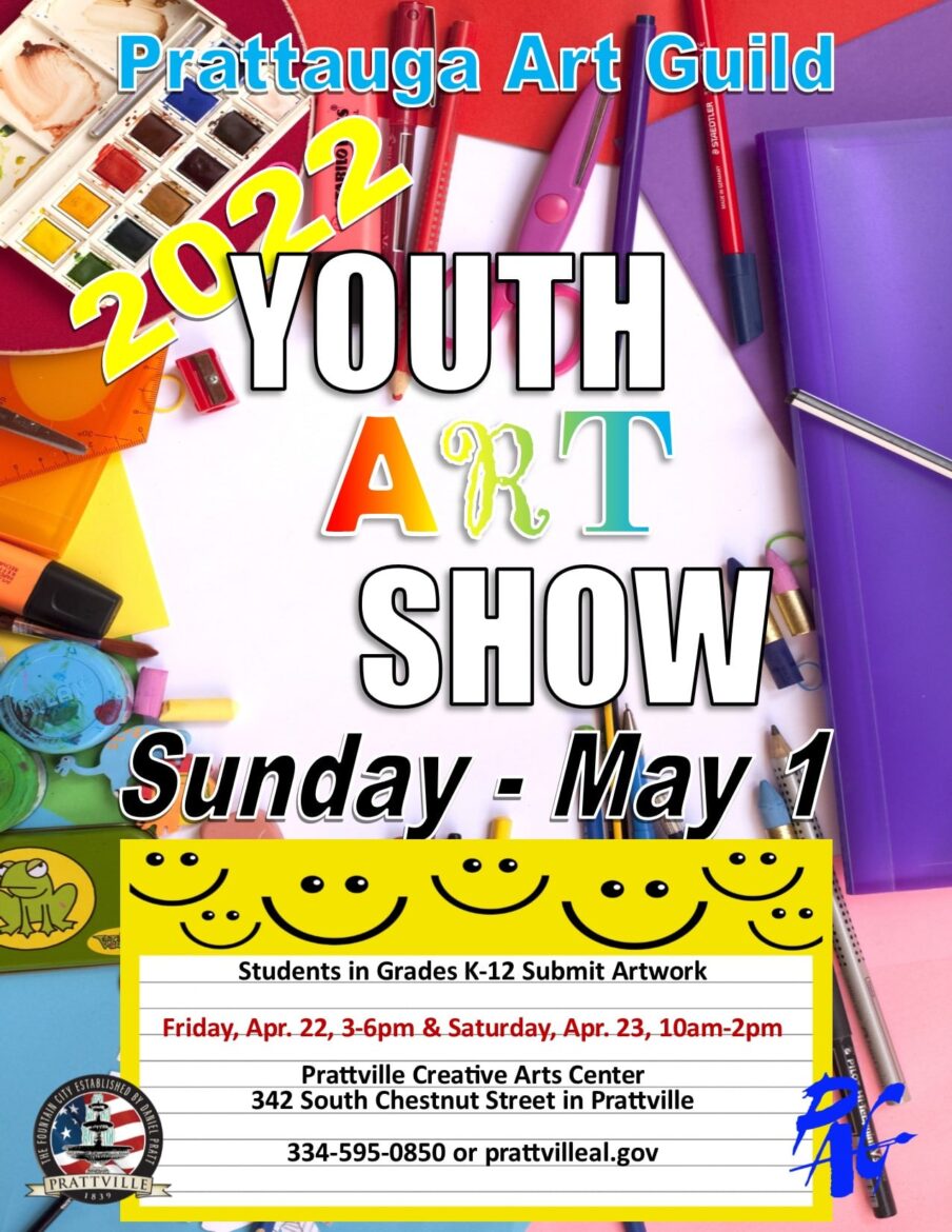 The City of Prattville and the Prattauga Art Guild are excited to host the 17th Annual Youth Art Show in May at the Prattville Creative Art Center and Gallery. Students in grades K-12, take out your paints, crayons, clay or cameras and get creative!