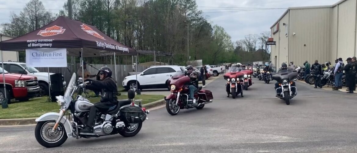 For a video of the riders leaving the Harley Davidson of Montgomery property, see https://www.facebook.com/Alabamachildrenfirst/videos/423989649176612