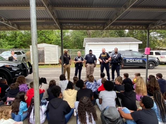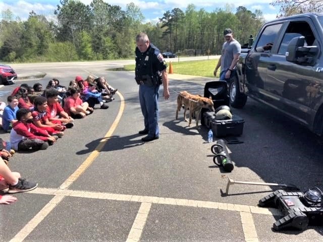 A total of 23 law enforcement officers were able to come to the school. Students were able to ask questions, hold the special gear that law enforcement uses, and get up close to the K-9 dog as well. ALEA provided several of their divisions which included SWAT, ABC (Alcoholic Beverage Control), Rural Crimes Unit, Major Crime and Crime Lab Unit, Aviation, Narcotics, K-9, and their Troopers. Millbrook Police Department, Millbrook Fire Department, and Montgomery Police Department Detective Division and Special Victims Unit were able to come and share information with students as well.