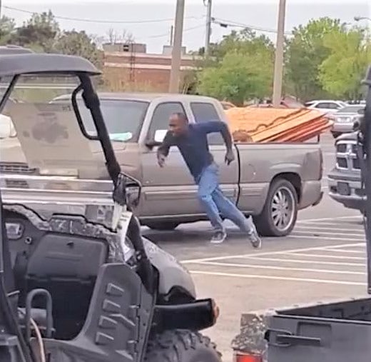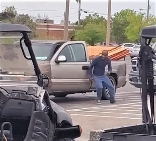 Before the detectives could get into place, they noticed the suspect running out of the door with the shopping cart, being followed by Lowe’s employees. One of the detectives chased the suspect on foot to a truck that was parked on the opposite side of the parking lot while holding up his badge and announcing himself as “Police.”