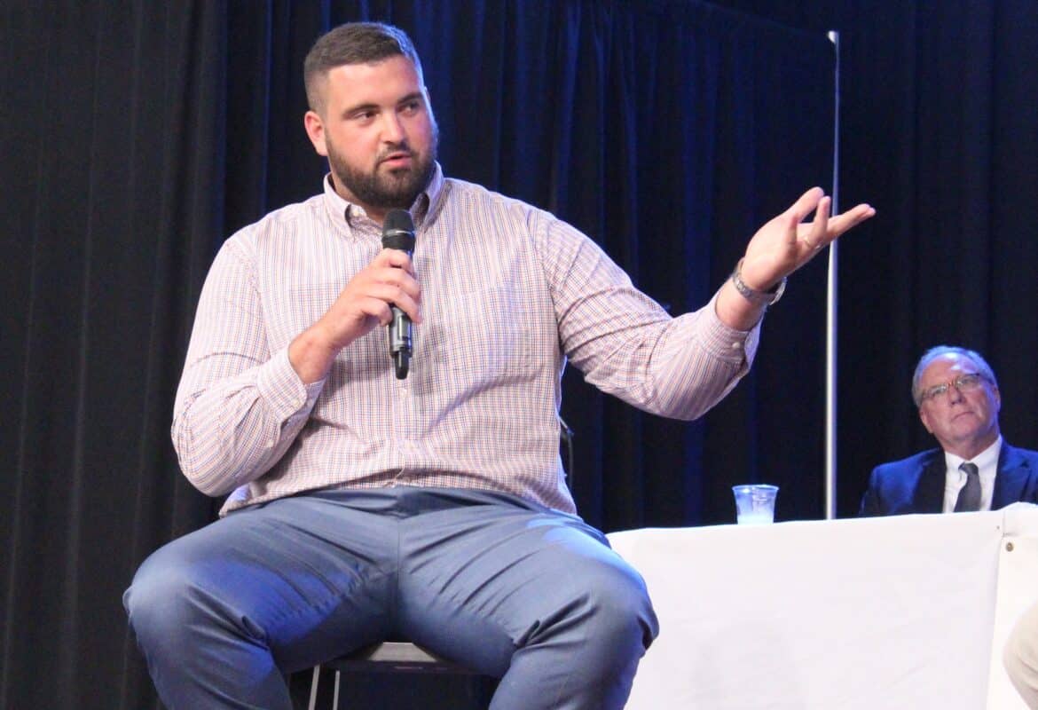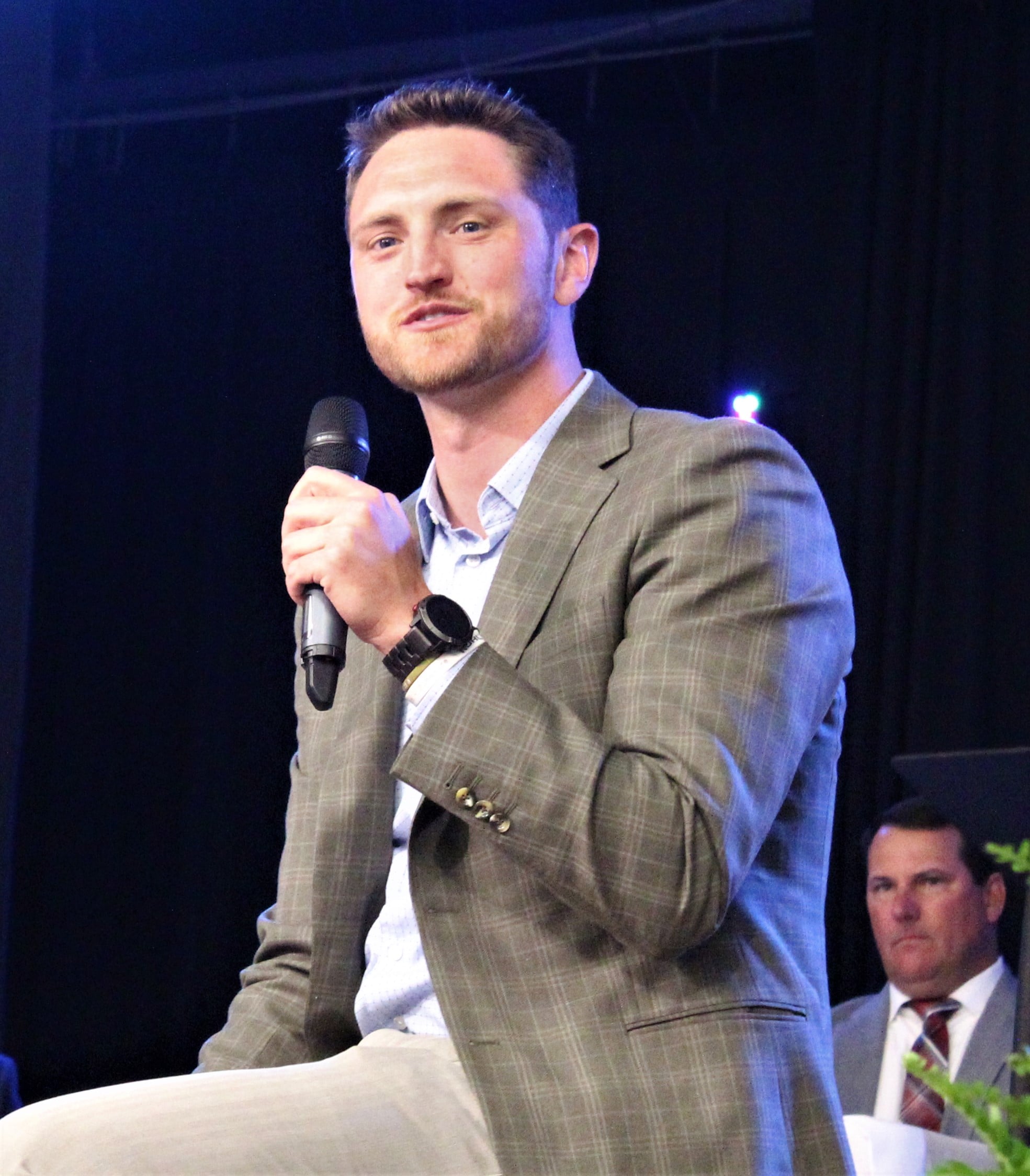 Austin Golson and Steven Clark came up to the stage next to share encouraging words to the students and their parents using stories from their football careers and also what they learned in life from a focus on their faith.