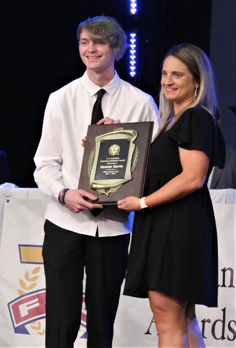 The next award given was the T.O. McDowell Christian Leadership Award, which was presented to Hunter Davis, who was honored for his display of servant leadership through the YMCA and community activities.