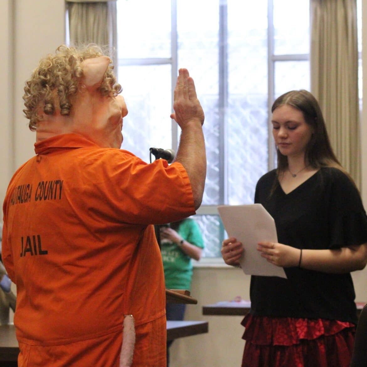 Also involved in the mock trial was Danielle Gantt, who played the Judge, Mylee Kervin, who played Mrs. Wolf, Brad Ekdahl, who played Jack Smith, Kaden Blackburn, who played the Plaintiff’s Counsel and Maggie Kervin, who played the Defendant’s Counsel.