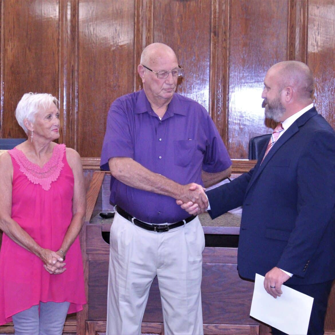 At this point, Commissioners approved going into Executive Session to discuss a resolution and after returning, Commissioner Rusty Jacksland called up to the front of the room educator Jerry Brown to recognize him for a 50-year teaching career.